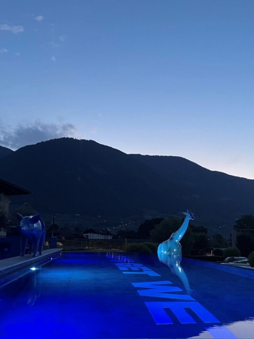 Schlosshof-Resort-Gäste können la PISCINA BLU nach Verfügbarkeit täglich von 08.00 bis 20.00 Uhr zu einem Tagespreis zwischen 9 und 12 € nutzen. Ein Glas Prosecco dazu geht aufs Haus. Stylische Handtücher verleihen wir gerne kostenfrei. LA PISCINA ist ADULTS ONLY. Die Blu Bar hat Dienstag, Freitag, Samstag und Sonntag von 15.00 - 21.00 Uhr geöffnet. Auch externe Gäste, die mal ordentlich blau machen wollen sind zu BAR-ÖFFNUNGSZEITEN herzlich willkommen. Die blaue Giraffe „Mandy“ und die drei blauen Schweine „Reinfried“, „Korbinian“ und „Eitelfritz“ können es kaum erwarten Euch kennenzulernen. Grunz Grunz. Wupp Wupp (so macht Mandy).